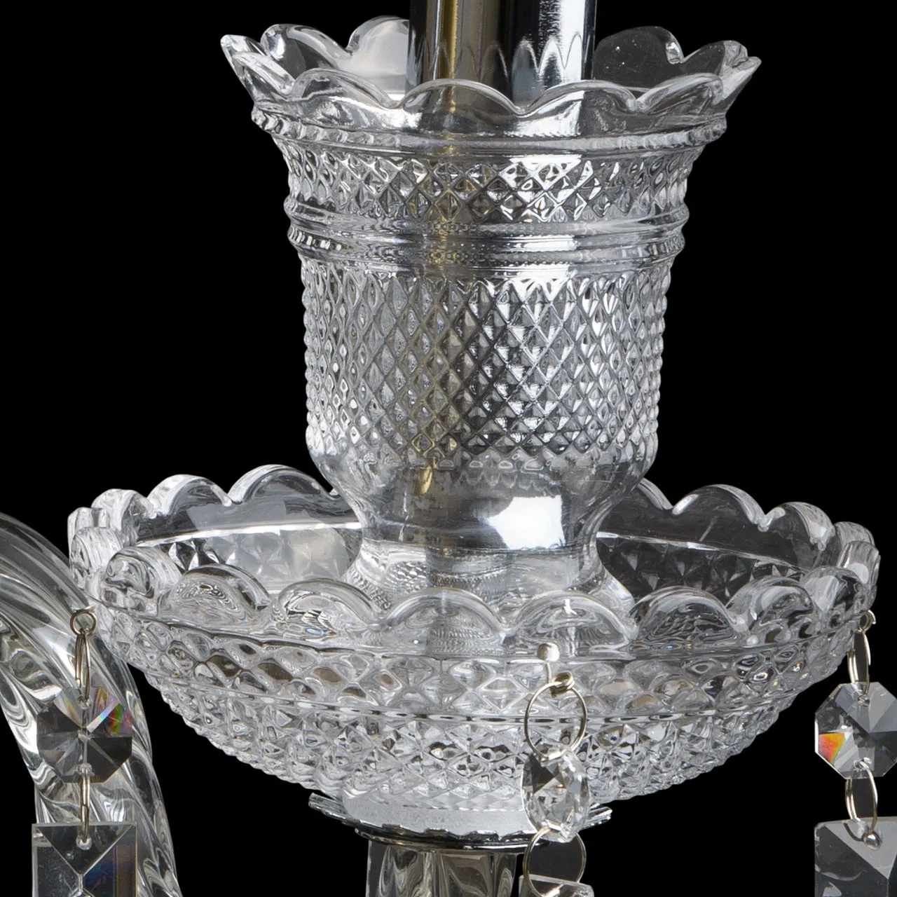 Металлическое основание цвета хрома, декоративные элементы из стекла и прозрачного хрусталя