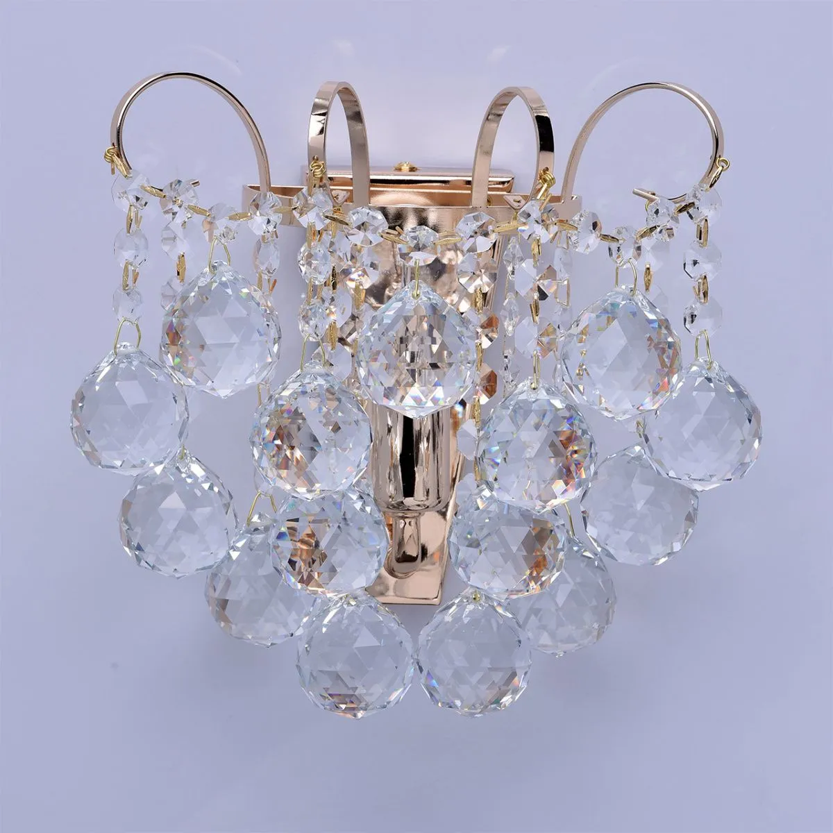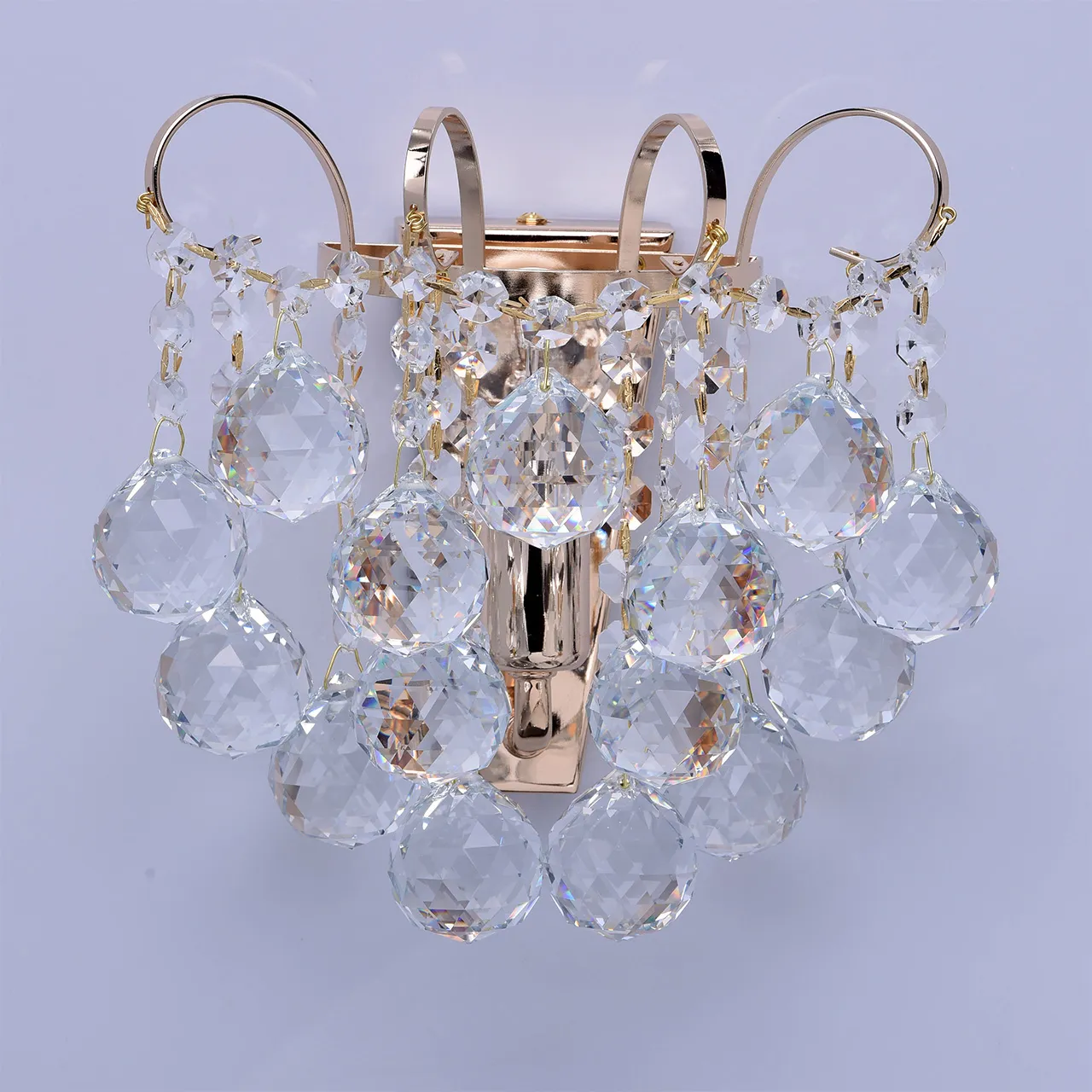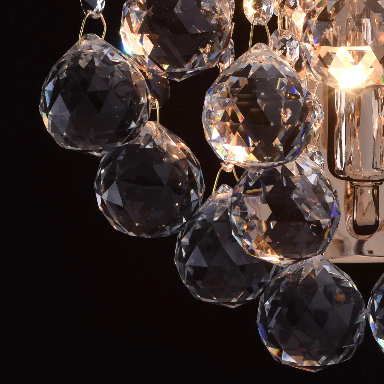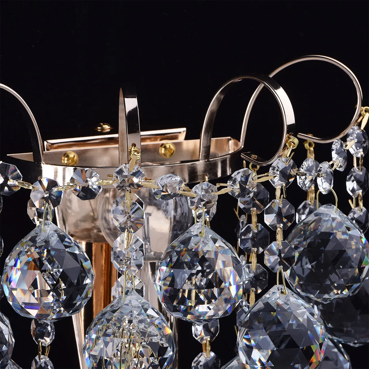 Металлическое основание цвета французского золота, декоративные подвески из хрусталя.