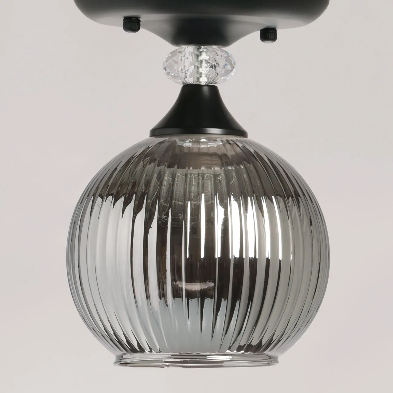 Основание/ металл/ черный Плафон/ стекло/ дымчатый Декор/ хрусталь/ прозрачный