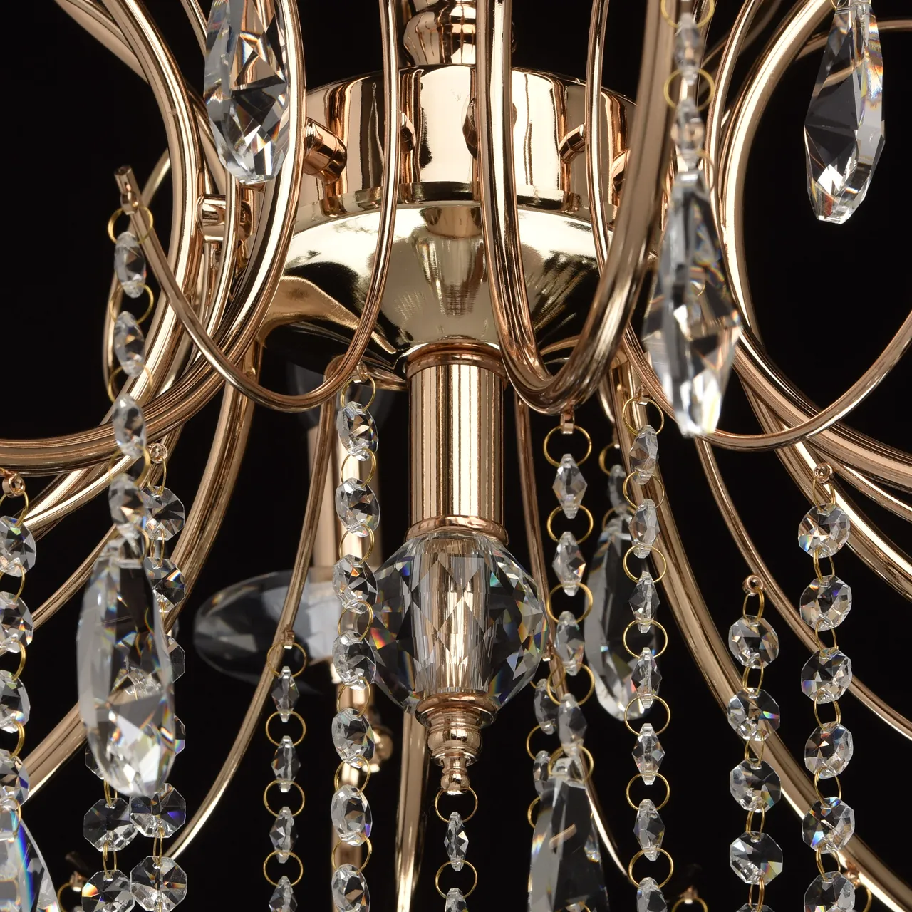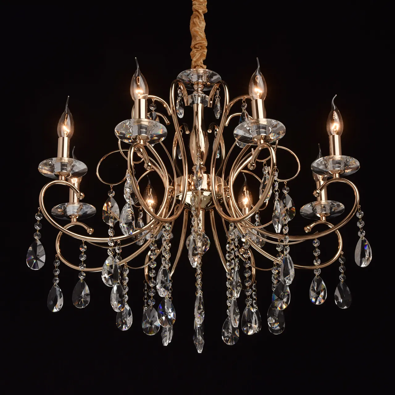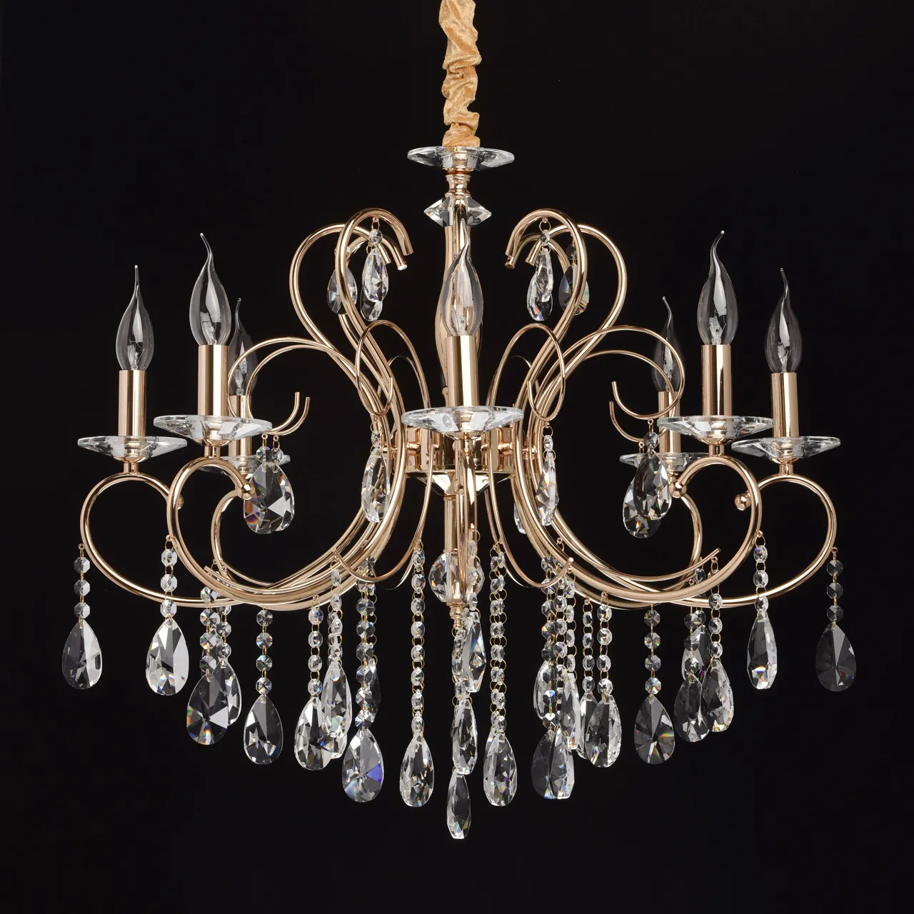 Металлическое основание цвета французского золота. Декор - хрусталь, высокого качества.