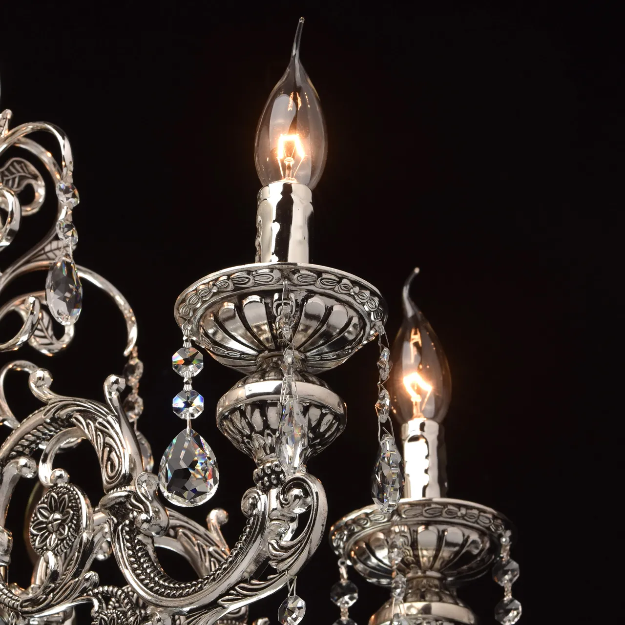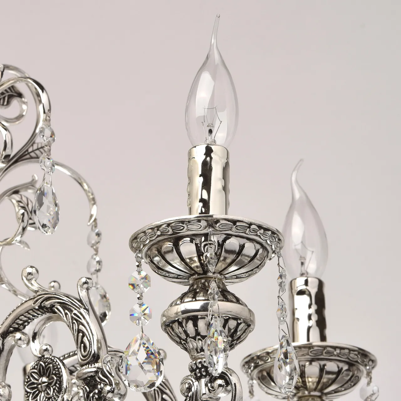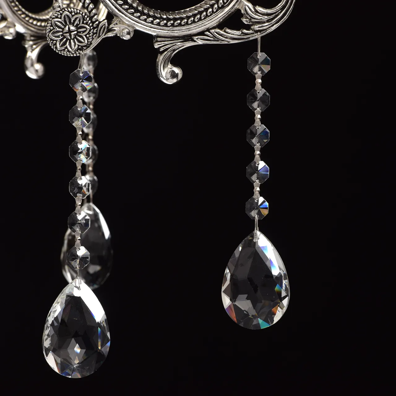 Металлическое основание серебряного цвета с патиной. Декор - хрусталь