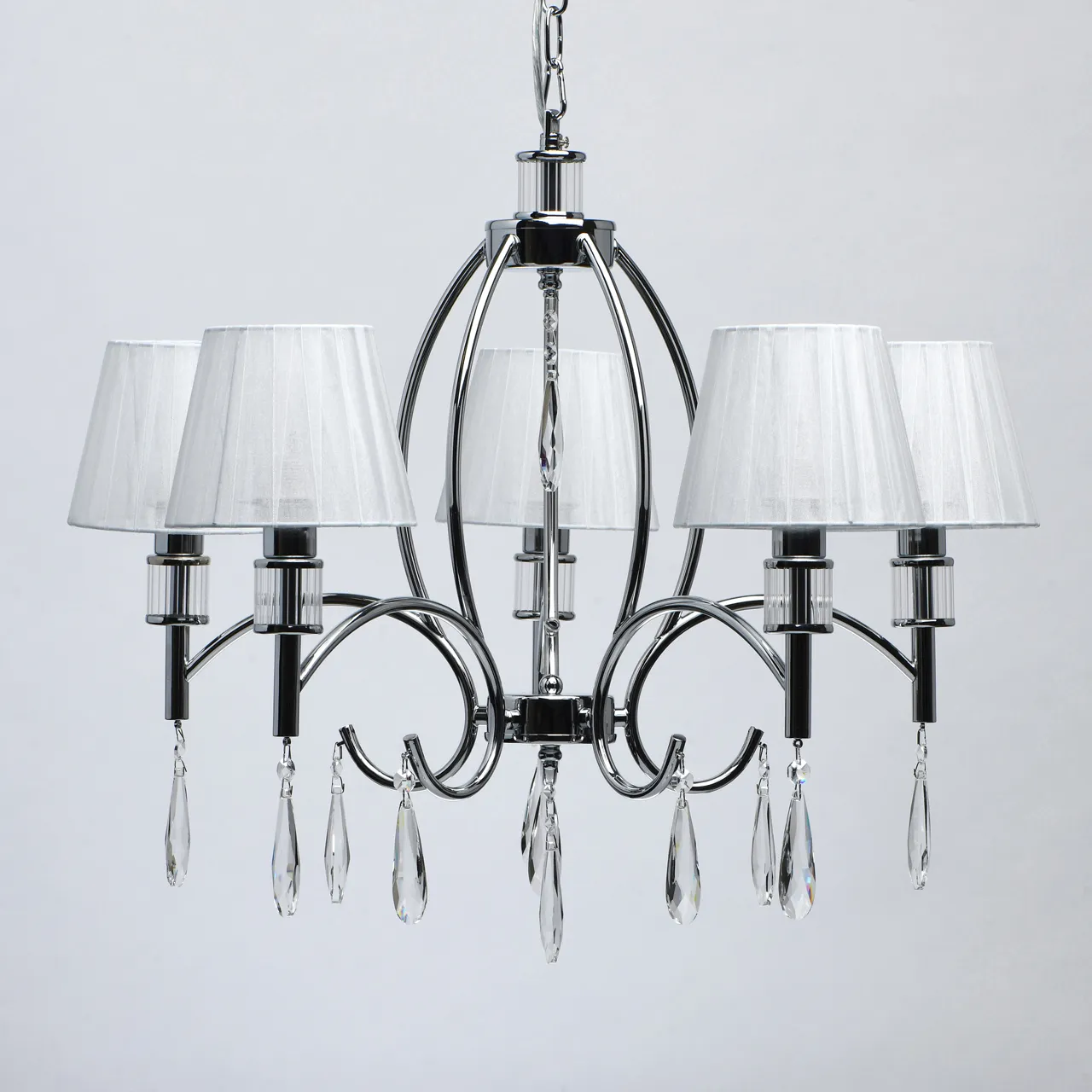 Основание/ металл/ хром Абажур/ текстиль/ белый Декор/ хрусталь/ прозрачный