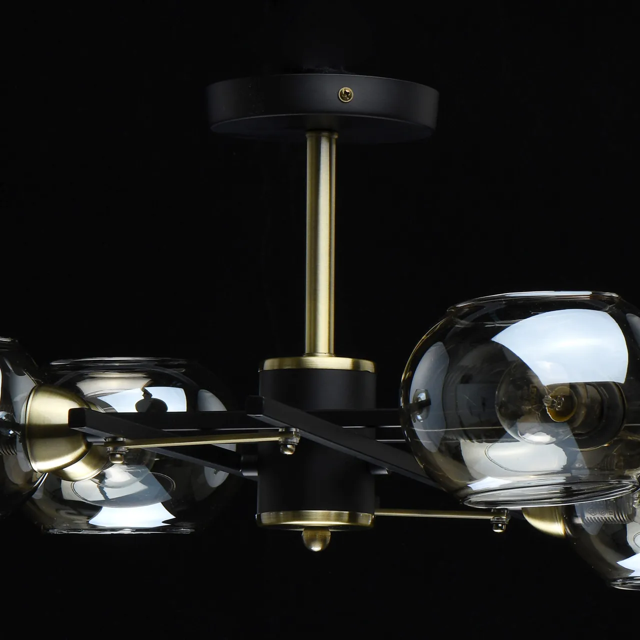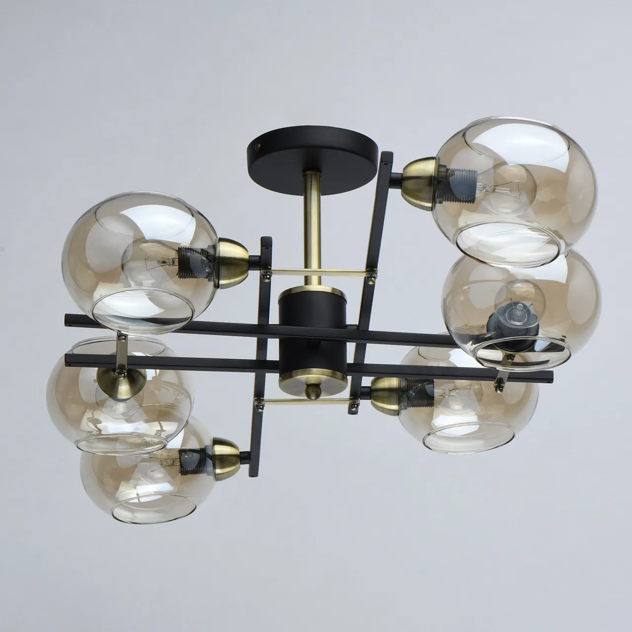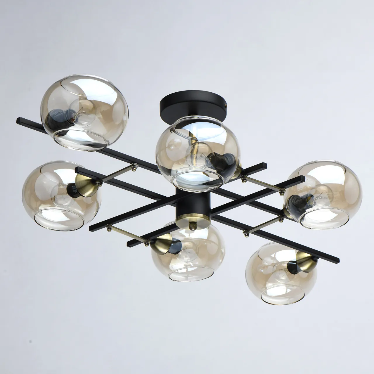 Основание/ металл/ черный, античная латунь. Плафон/ стекло/ шампань