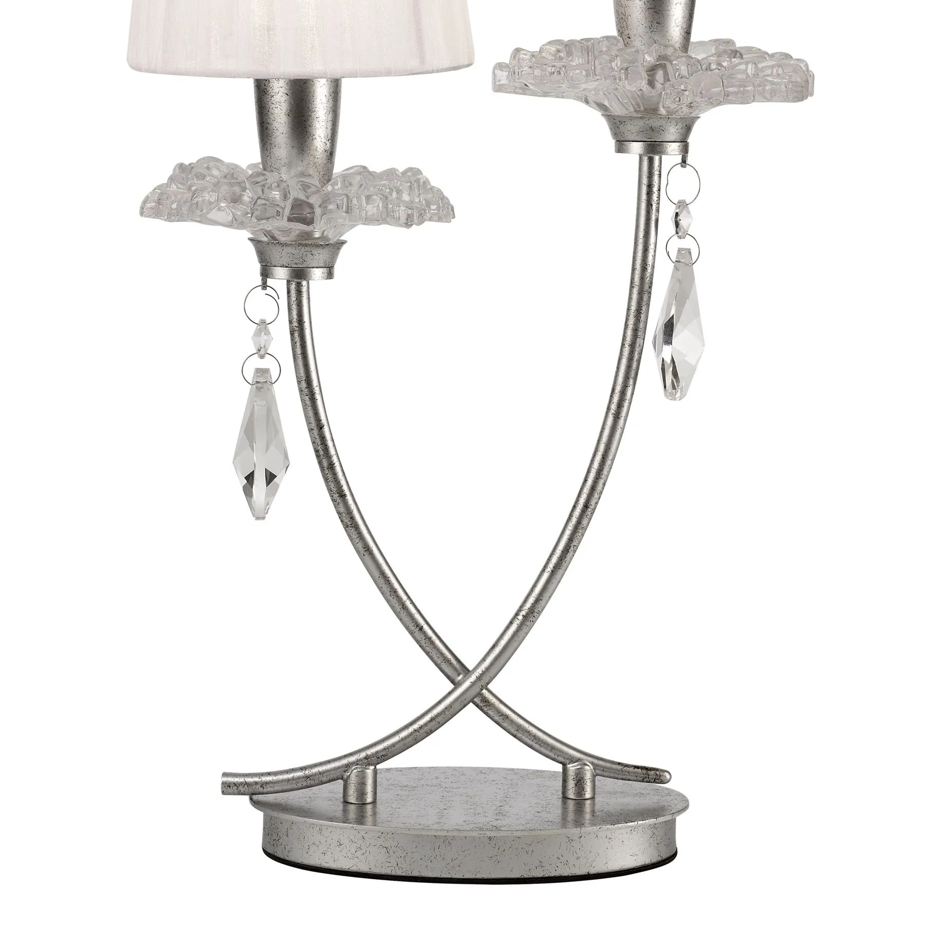 замысловатого кристаллизованного стекла и хрустальных капель, янтарных оттенков на золотых рамах и прозрачных на серебре. Небольшие интегрированные текстильные элементы разработаны так, чтобы наилучшим образом соответствовать цветовой отделке светильников. Современные оттенки белой органзы включены в каждый серебристый светильник, в то время как золотая отделка сочетается с более традиционным плиссированным кремовым шелком. Свет от ламп E14 фильтруется через абажуры спокойным и изящным способом, потрясающе преломляясь в хрустальных каплях. Дизайн