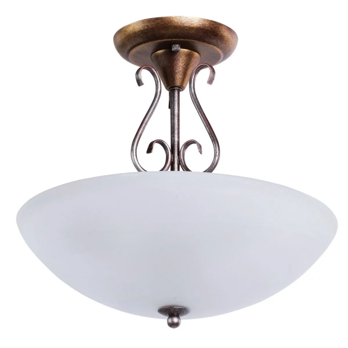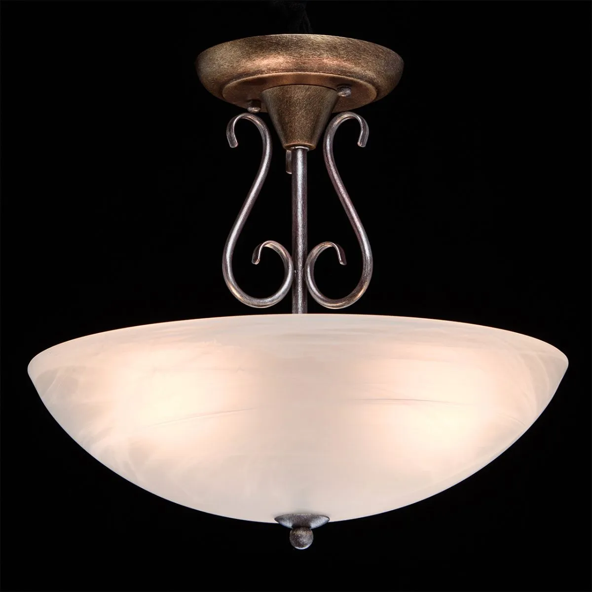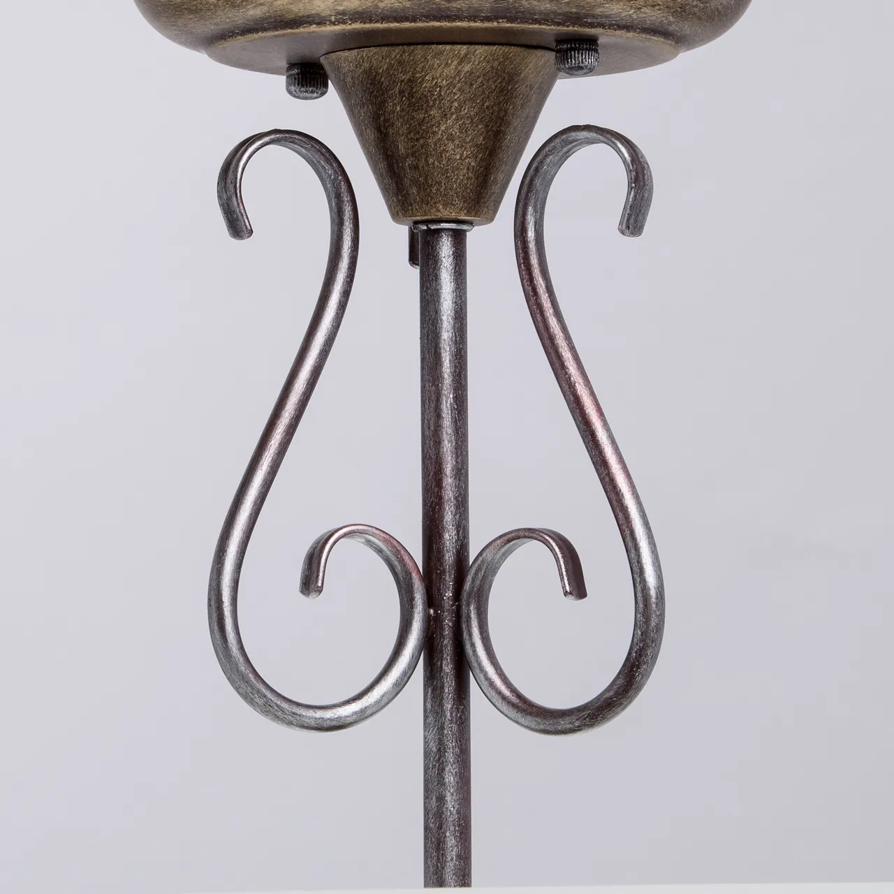 Крашеное, из комбинации цветов серебра, золота и кофе, металлическое основание, стеклянный плафон